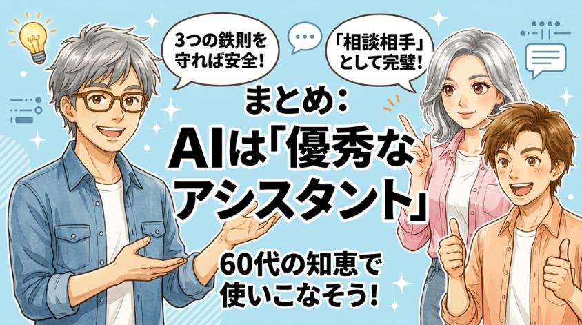 9. まとめ——AIは「優秀なアシスタント」、60代の知恵で使いこなそう