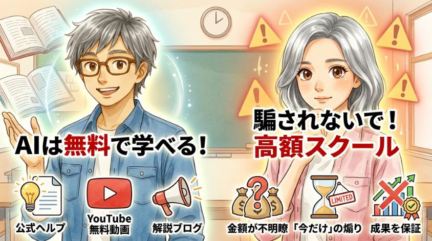 「AIの使い方を教えます」という名目で、数十万円の受講料を請求するスクールやコンサルティングが急増しています。