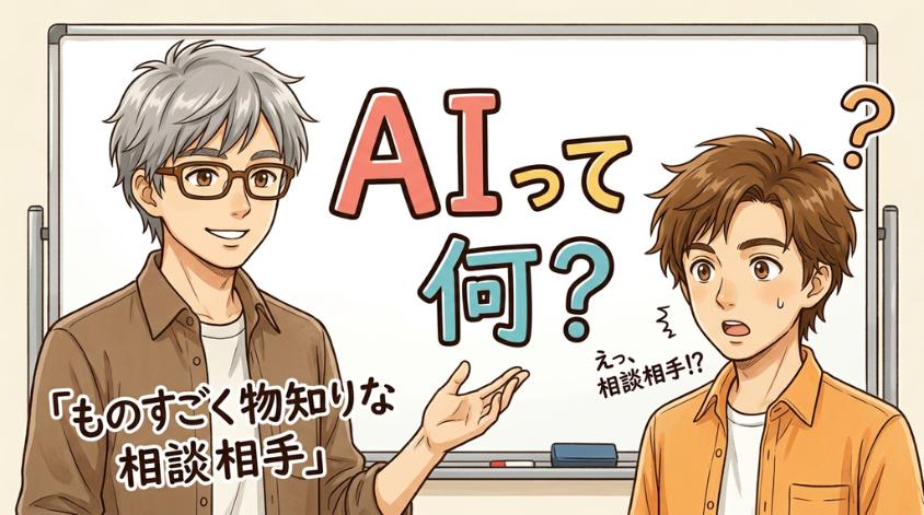 簡単に言うと、AIは「ものすごく物知りな相談相手」だね。