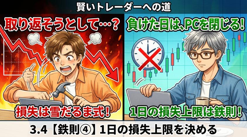 1日の損失上限を決める。負けた日はPCを閉じて散歩する