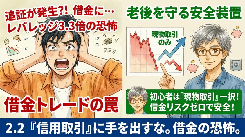 現物取引のみ。信用取引には絶対に手を出さない