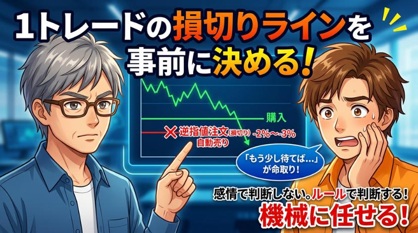 1トレードの損切りラインを事前に決める(-2%〜-3%で逆指値注文)